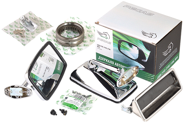 Наружные зеркала Pegas имеют современный дизайн, закругленные края, расширенный угол обзора, антибликовое покрытие. В комплекте поставки идет 2 зеркала (левое и правое), крепежные элементы. На выбор потребителя наружные зеркала могут быть черного или хромированного цвета.
